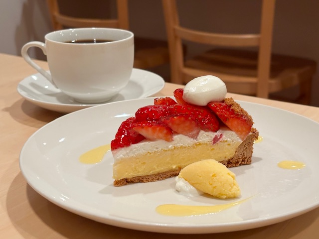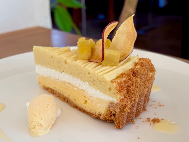 お店で食べてもらう時は ハンドメイドのアイスとソースで デコレーションをさせていただきます。 パテシェが作る季節のケーキで ほっこりとして下さいね。